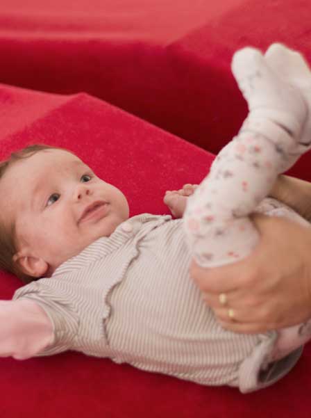 - Wanneer je je kindje verschoont of aankleedt, leg je kindje dan zo neer dat het naar de niet-voorkeurskant moet draaien om jou te zien.